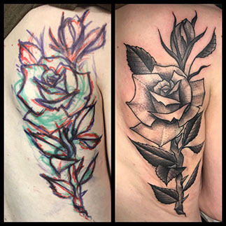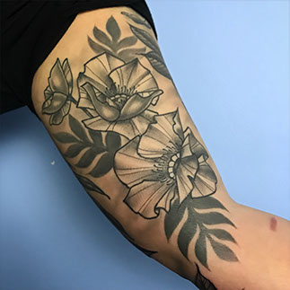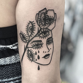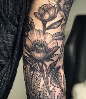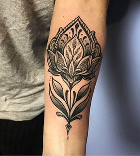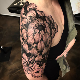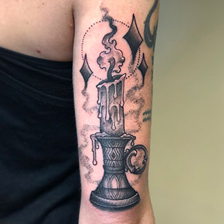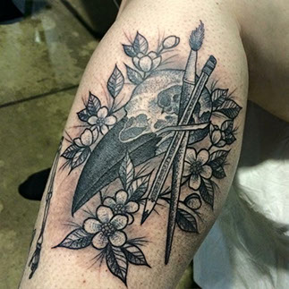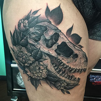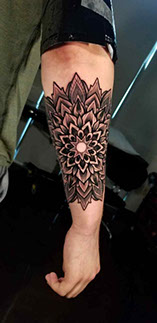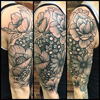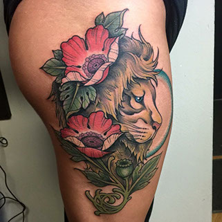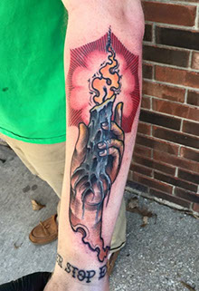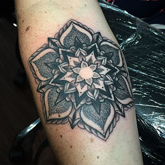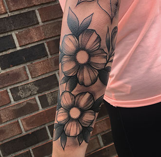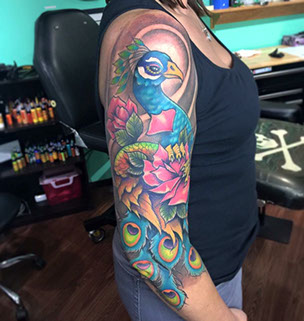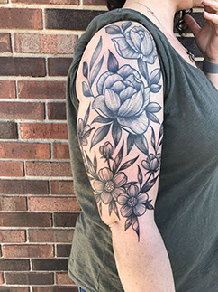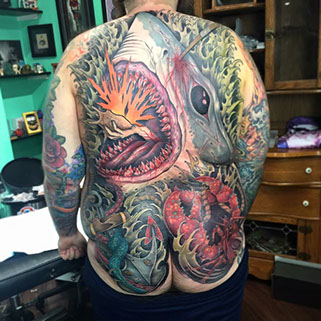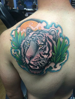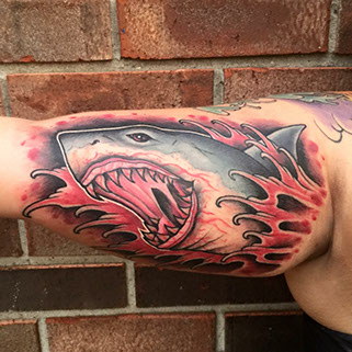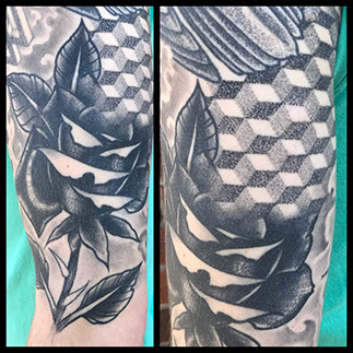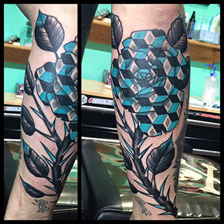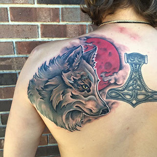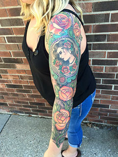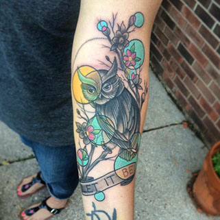 Jes is one of the most versatile tattoo artists in the midwest but is often recognized for his neo-traditional color tattoos and his geometric black and dotwork. Creating custom tattoos with clean line work, lots of black, bright colors, and high contrast is what you will first notice when looking through Jes's portfolios.